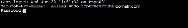4. Done. Now you can use TCP Traceroute command line tool. All you need is to type sudo tcptraceroute ********* and press enter/return key:
